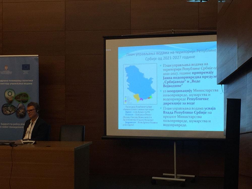 На конференцији су предочени главни резултати и користи које су проистекле током ових осамнаест месеци трајања пројекта. Присутнима су се обратити представници Делегације Европске уније, Немачке, Аустрије, Холандије и Министарства пољопривреде, шумарства и водопривреде. Након чега, је одржана панел дискусија са на којој су учесници пројекта сумирали своје утиске и оценили пројекат као изузетно успешним. Том приликом стални саветник на твининг пројекту Др Штефан фон Кајц, изјавио је да су резултати релевантни за Србију, као и за целу ЕУ, јер вода не познаје границе као и да ће описане мере помоћи у постизању дугорочног циља доброг статуса свих река и подземних вода, заштитити правилно снабдевање водом, смањити загађење вода и заштитити биодиверзитет.